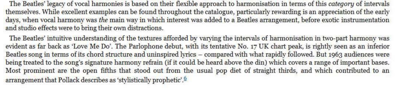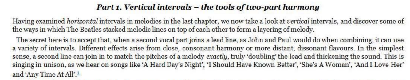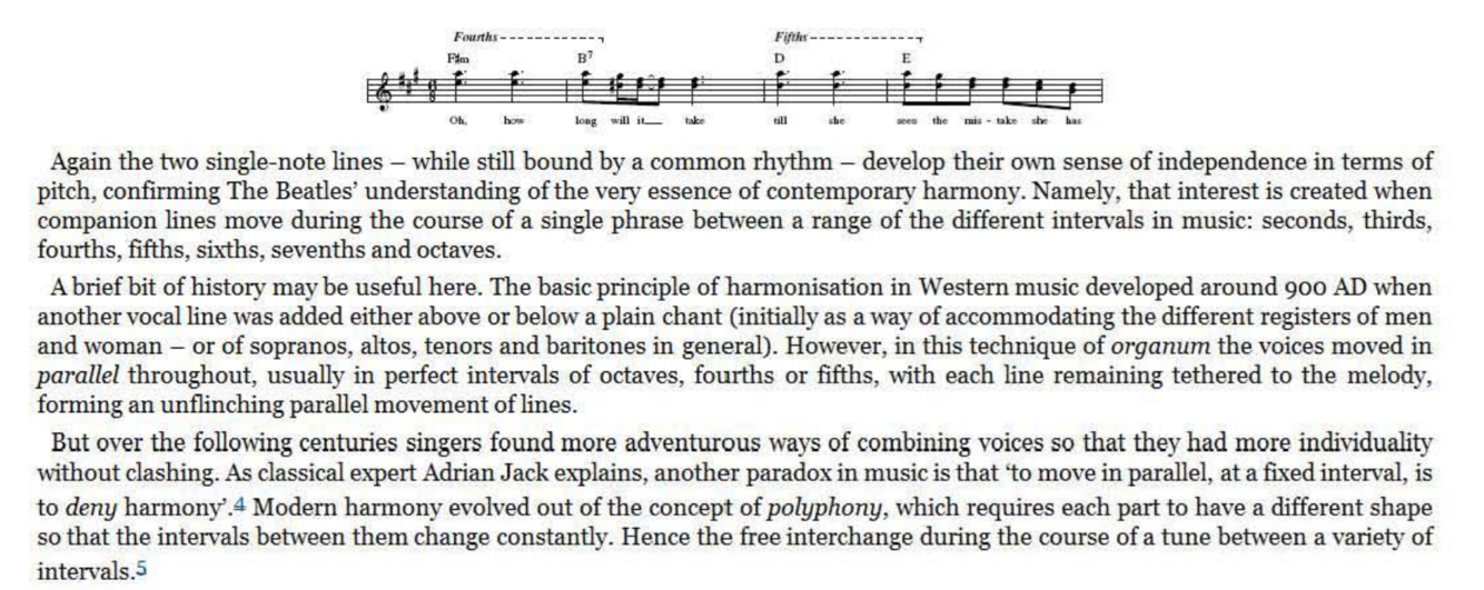 But the vocal interest is multiplied when the two parts still track each other in terms of the contour and rhythm of the phrase - but now above or below the original line, ie. at a higher or lower series of pitches. This may be an obvious, primitive description of how to ‘harmonise a tune’ , but it is one that raises an interesting point. McCartney himself describes how the presence of more than one