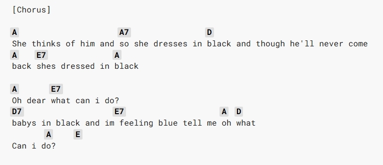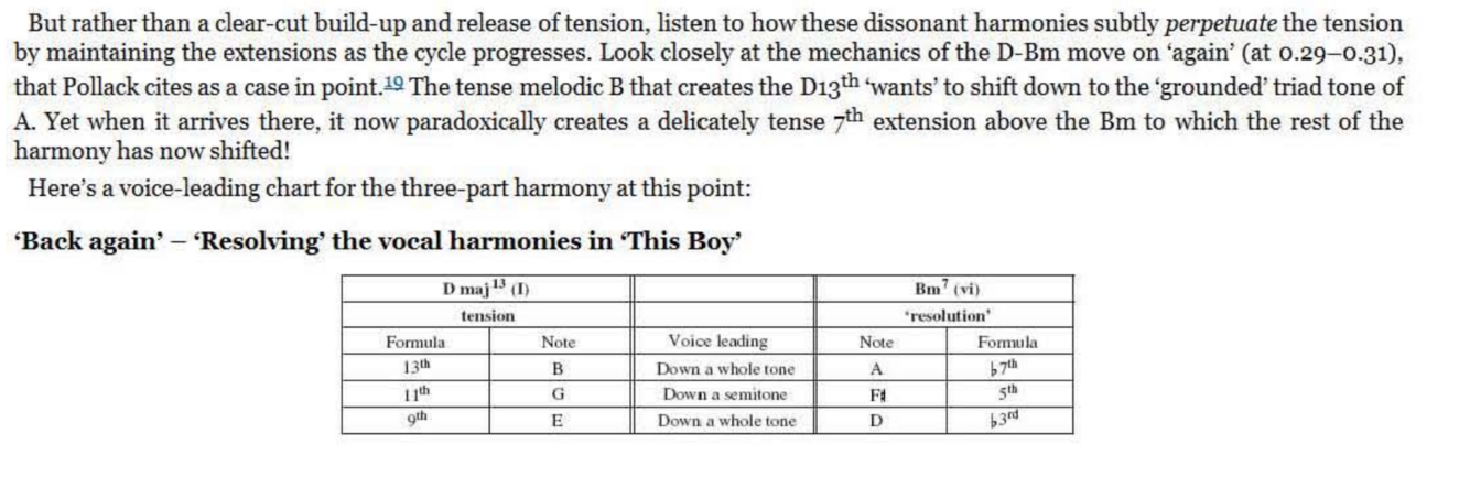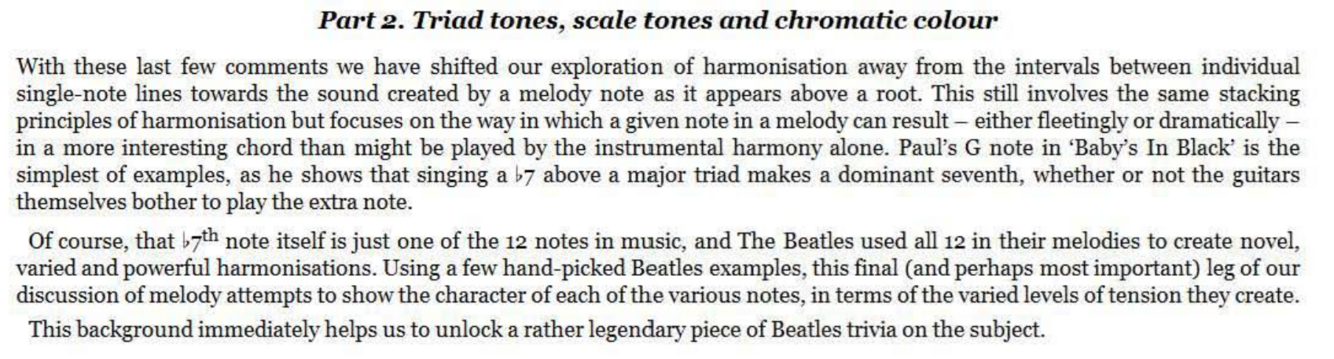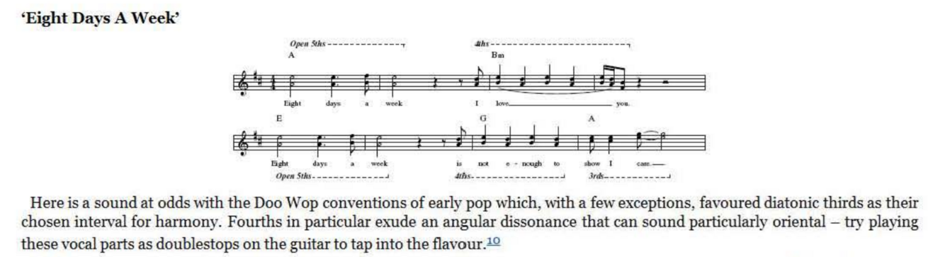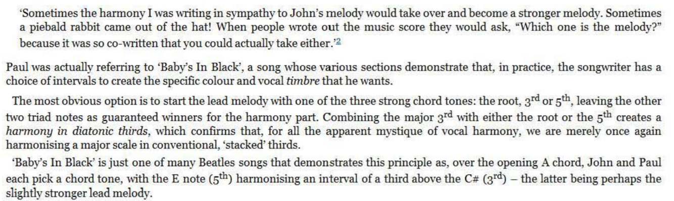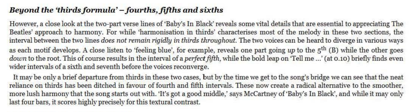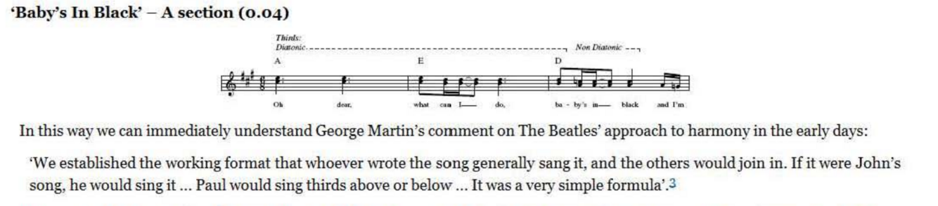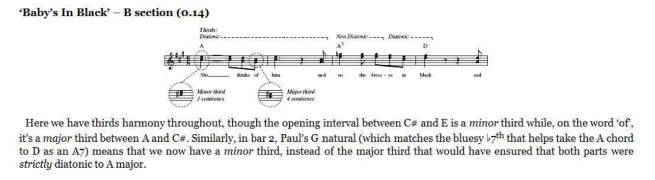 major or a minor third (i.e., distances of both 3 and 4 semitones will be involved over the course of a line in order to keep the harmony diatonic, or to accommodate a non -diatonic effect in one of the lines). ‘Baby’s In Black’ demonstrates both situations particularly clearly in the second part of the verse: