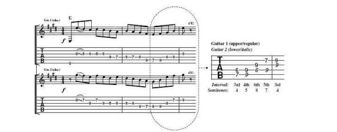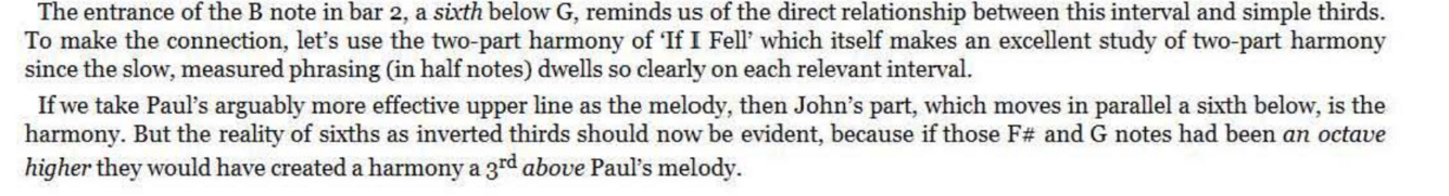 It is important to remember that , as a line unfolds in harmonised thirds, the interval at any given point might consist of either a