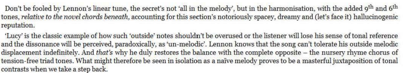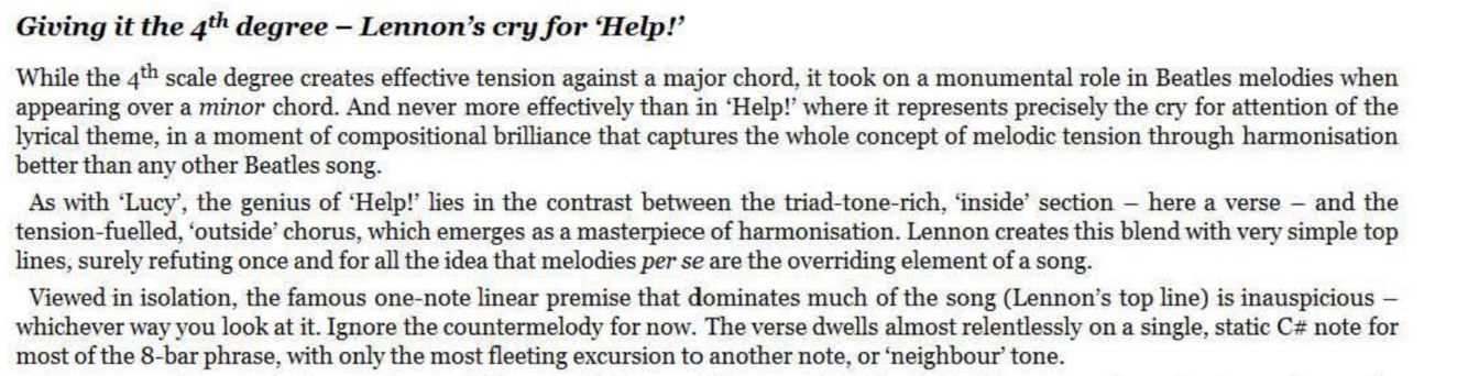 As a brief aside to our earlier discussion, this extract also shows the varied way that The Beatles would approach their vocal harmonies in terms of structure rather than just the interval, - in ‘Baby’s In Black’ the harmonies are continuous; in ‘Hey Bulldog’, the opening harmony is answered by a single voice; here the single voice is answered by the harmony; while George Martin’s favoured early formula was for a single- part verse to be joined by harmony in the mlddle eight, e.g., ‘A Hard Day’s Night’.