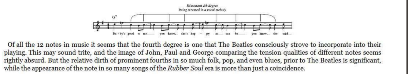 Starting with a unison sound where both John and Paul, for once, sing the same opening note (‘Last .. .’), the moving line drops against the upper E, moving first to a jarring minor second (,night’). This is created by the major-seventh -against-tonic that rings out dissonantly, if briefly, before the descent continues down the scale, widening to an interval of a sixth (‘to’) before settling on that final fourth (‘girl’)