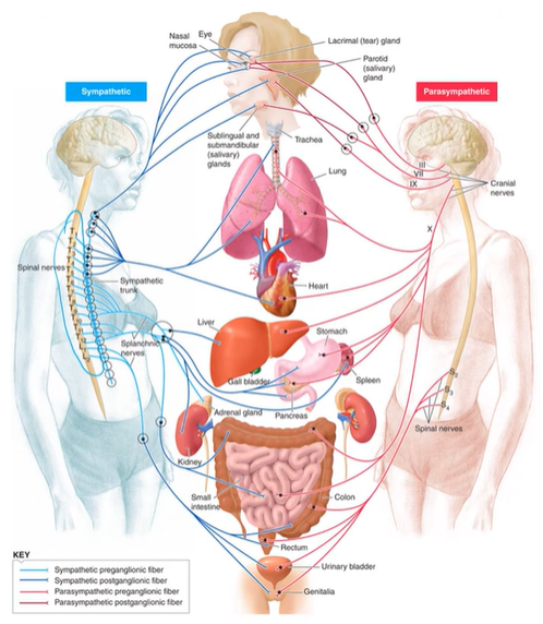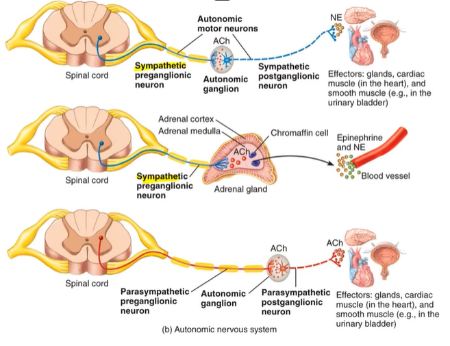 What transmits nerve signals to cardiac muscle, smooth muscle, and glands?
