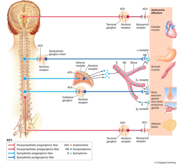 Autonomic- cardiac, smooth, most exocrine glands, endocrine glands, adipose tissue