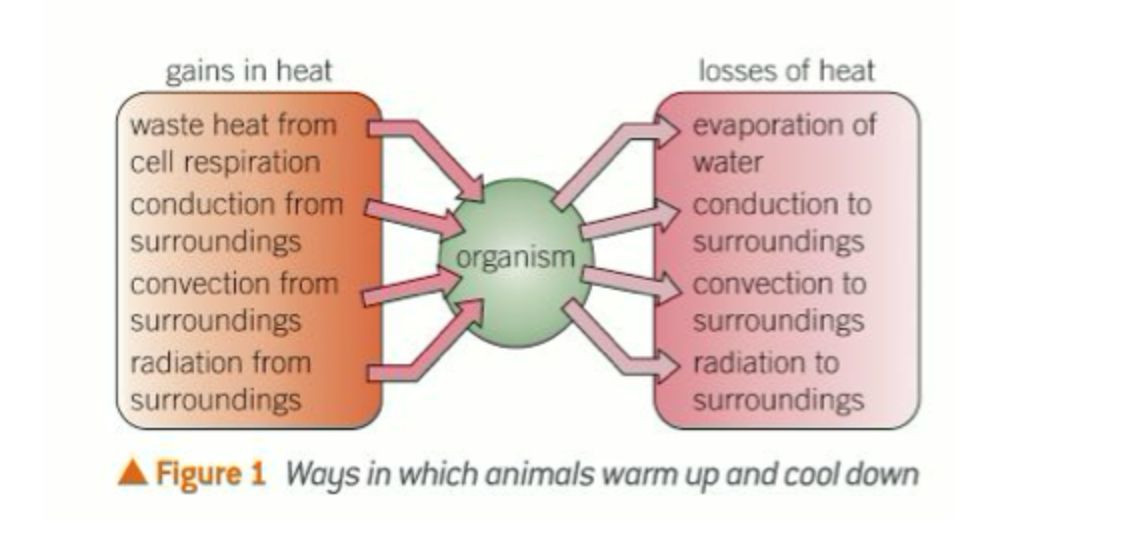Organisms are constantly heating up and cooling down as a result of their surroundings. These changes depend on a number of physical processes. These include: