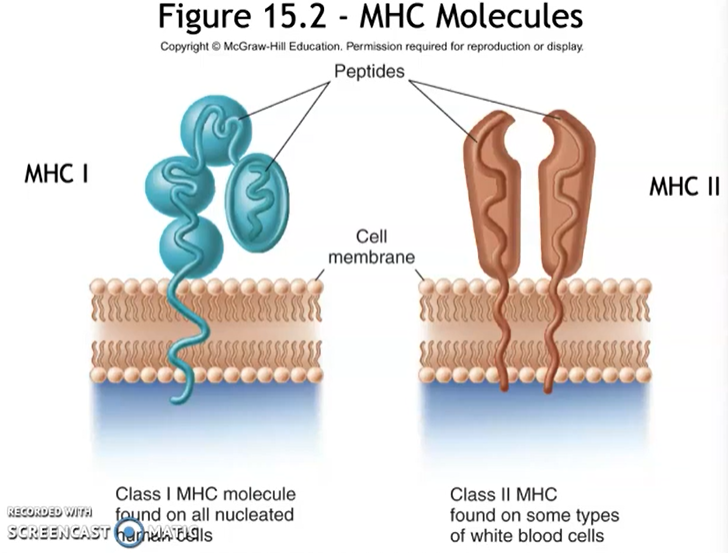 MHC I - MHC Class 1: tags on every body cell (except RBC) saying it’s your cell