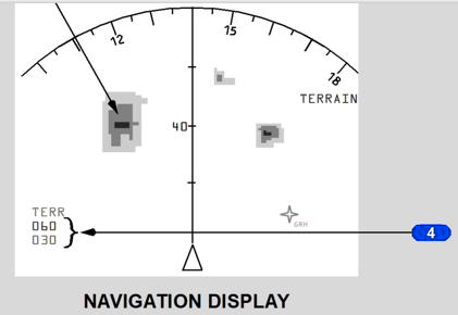 Located on the lower left-hand corner of the ND. Displays elevation of highest and lowest terrain. The color of the elevation number corresponds to the terrain elevation.