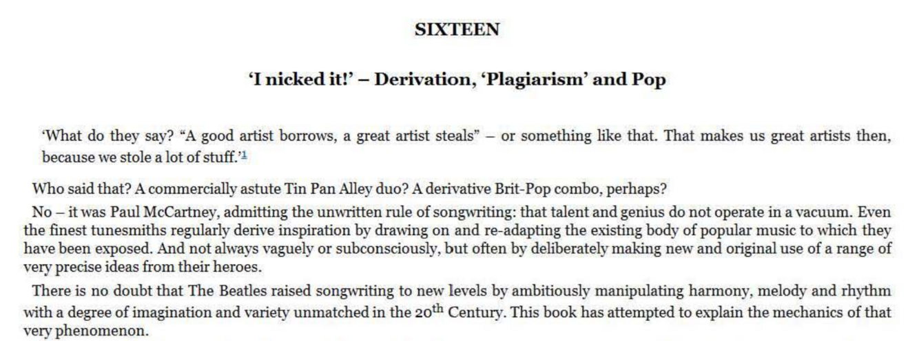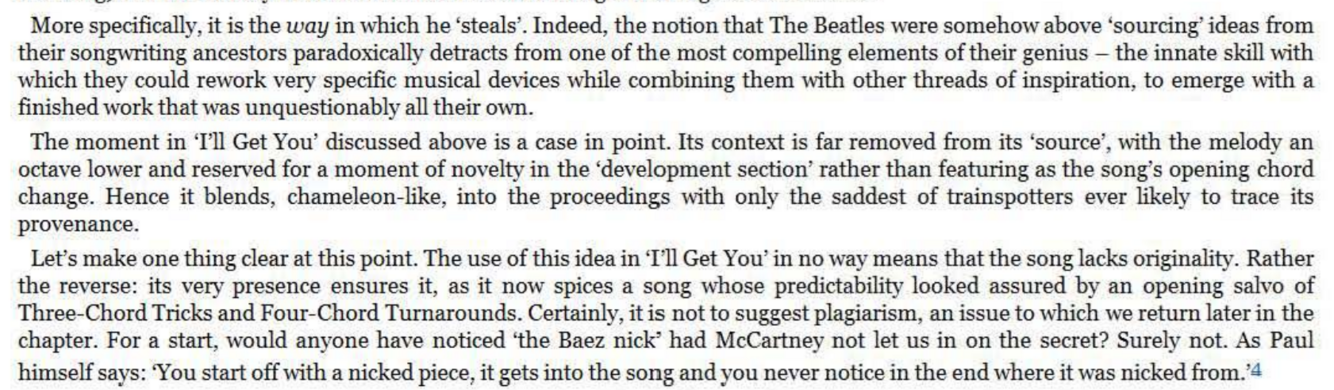 It is surely this common language of pop music (in which various obvious and not - so -obvious devices are up for grabs at any point in a song) that McCartney has in mind when he acknowledges that ‘a great artist steals’