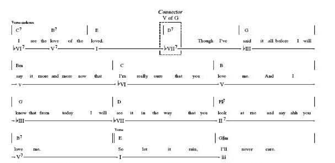 easier, the Roman numerals ignore the implied modulations and are expressed in relation to the verse key of E major throughout.
