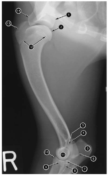 Mediolateral radiograph of canine humerus