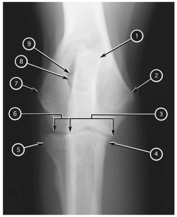 Craniocaudal radiograph of canine elbow joint