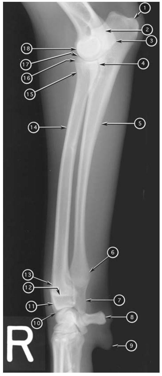 Mediolateral radiograph of canine elbow joint