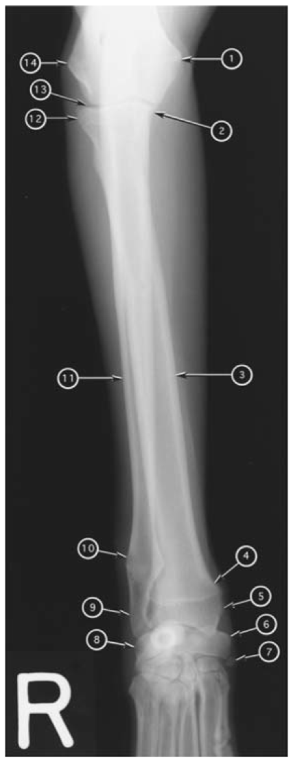 Craniocaudal radiograph of canine antebrachium