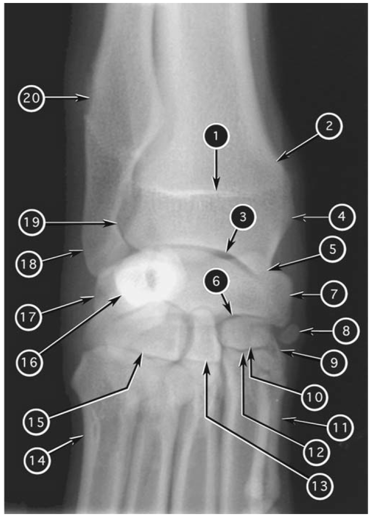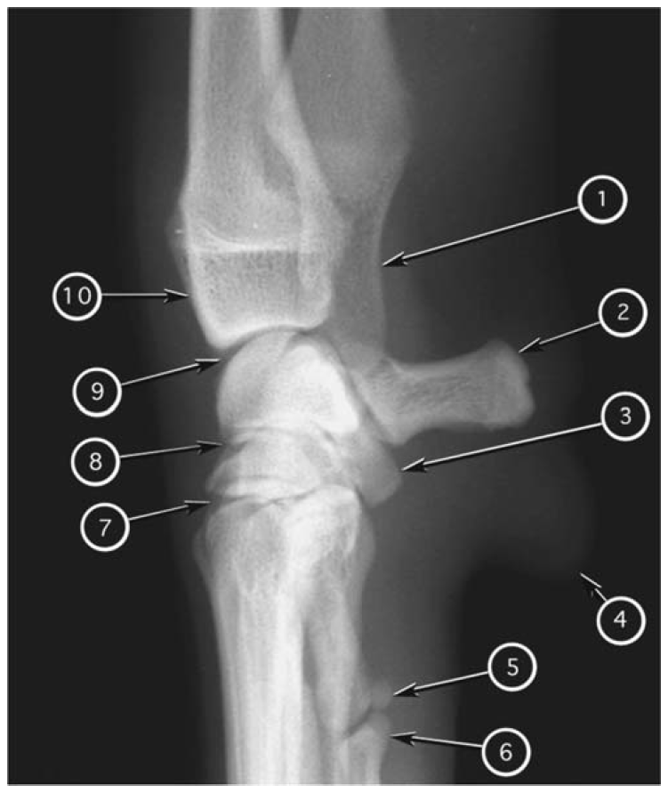 Mediolateral radiograph of canine carpus