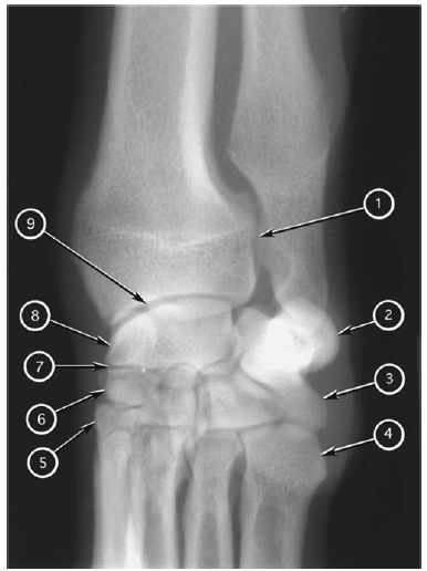 Dorsopalmar radiograph of canine carpus