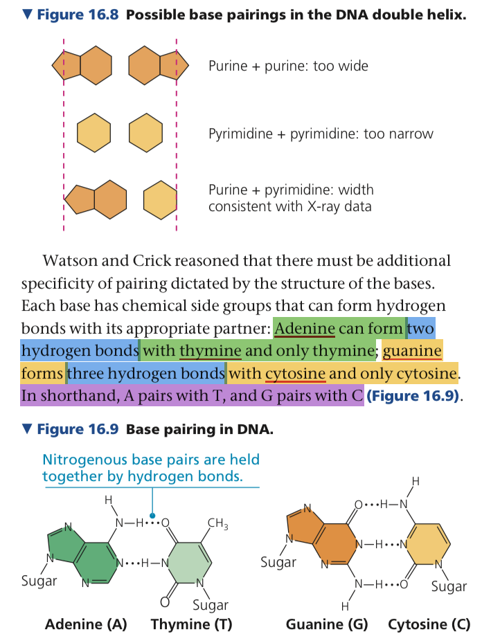 A purine- adenine and guanine, must pair with a pyrimidine- cytosine and thymine