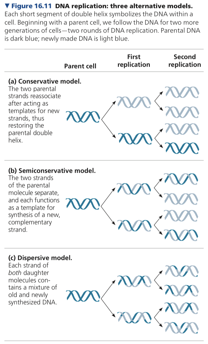 Semiconservative model- after replication the two daughter molecules will have one old parental strand and one new strand