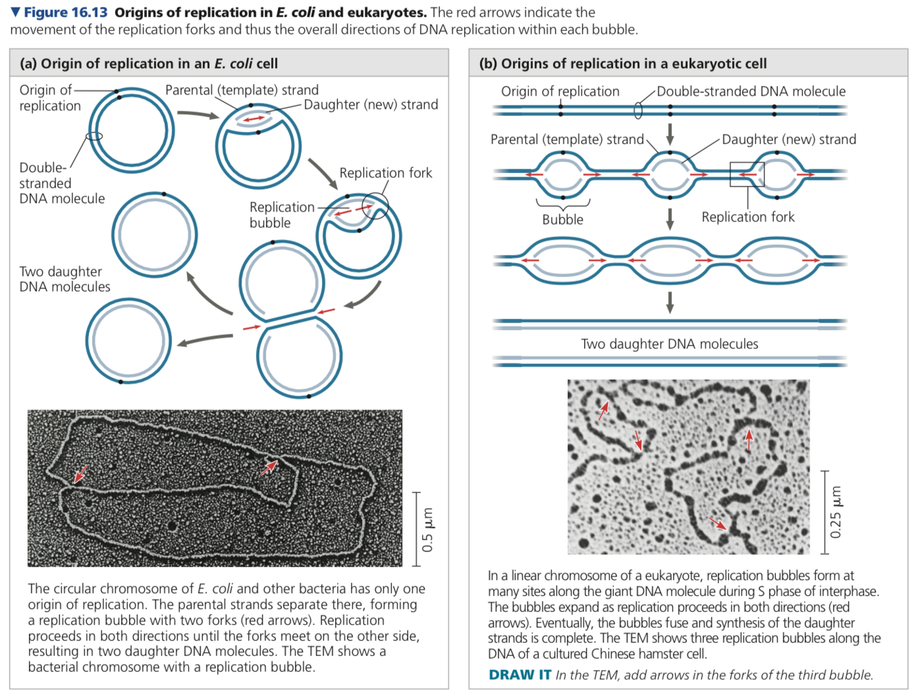 Proteins that initiate replication recognize a specific sequence and attach to the DNA opening up a replication “bubble”