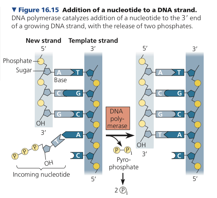 DNA polymerase cannot initiate the synthesis of polynucelotides; can only add to existing chain that is base paired to the template strand