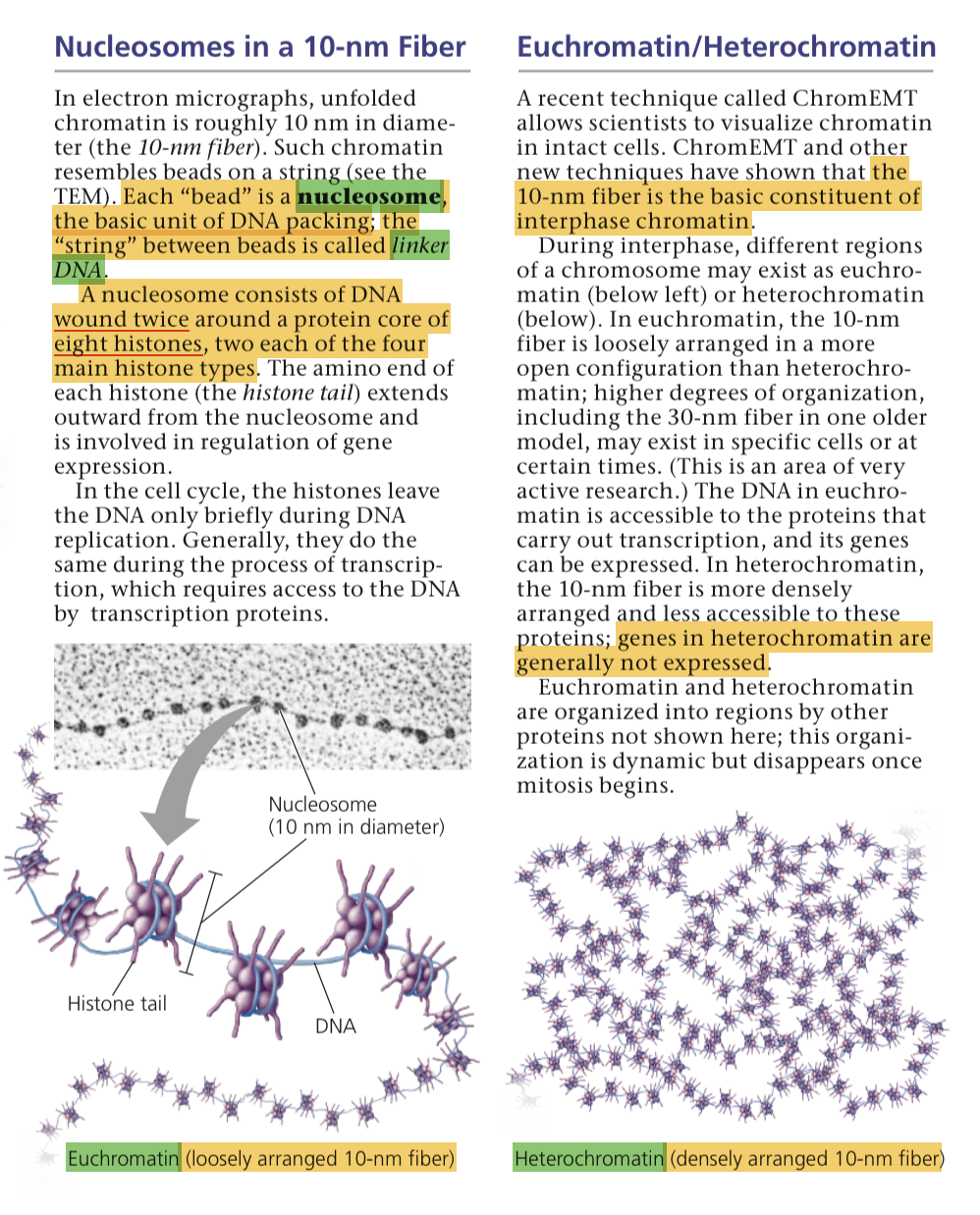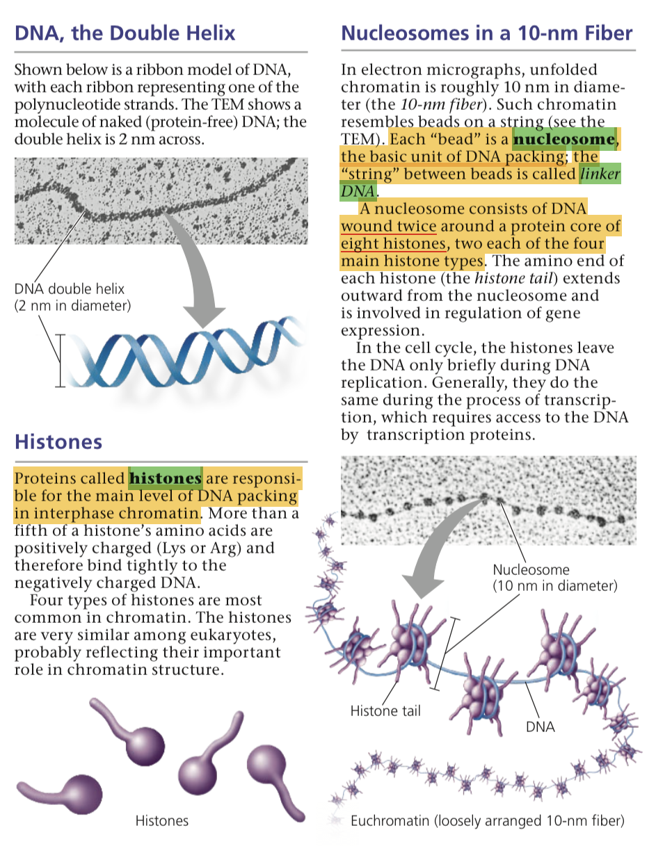 Unfolded DNA resembles “beads on a string” with each bead representing a nucleosome and the string representing linker DNA