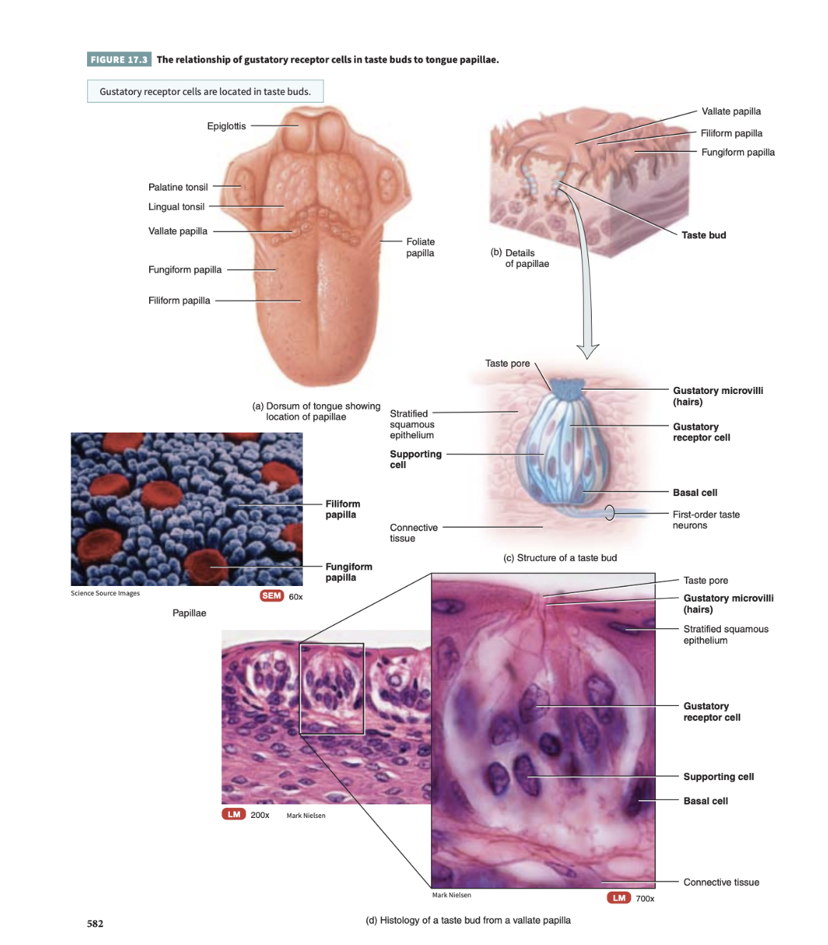 AKA papilla; elevations of the tongue where taste buds are found. Increase the surface area and provide a rough texture to the upper surface of the tongue.