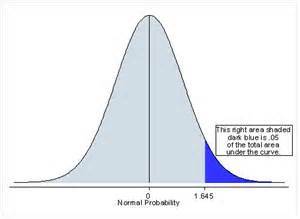 Viewing a normal curve, right tailed, small shaded region with calculated value and critical value established =