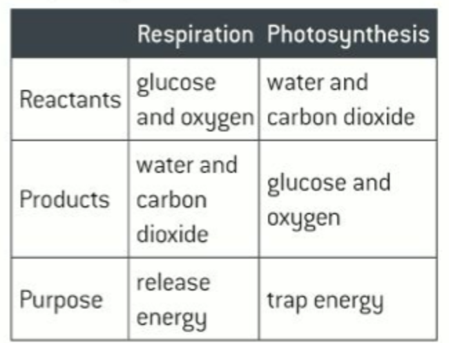 The two reactions are intimately linked (Table 1). The raw materials for one are the products of the other so they are interrelated throughout the living world.