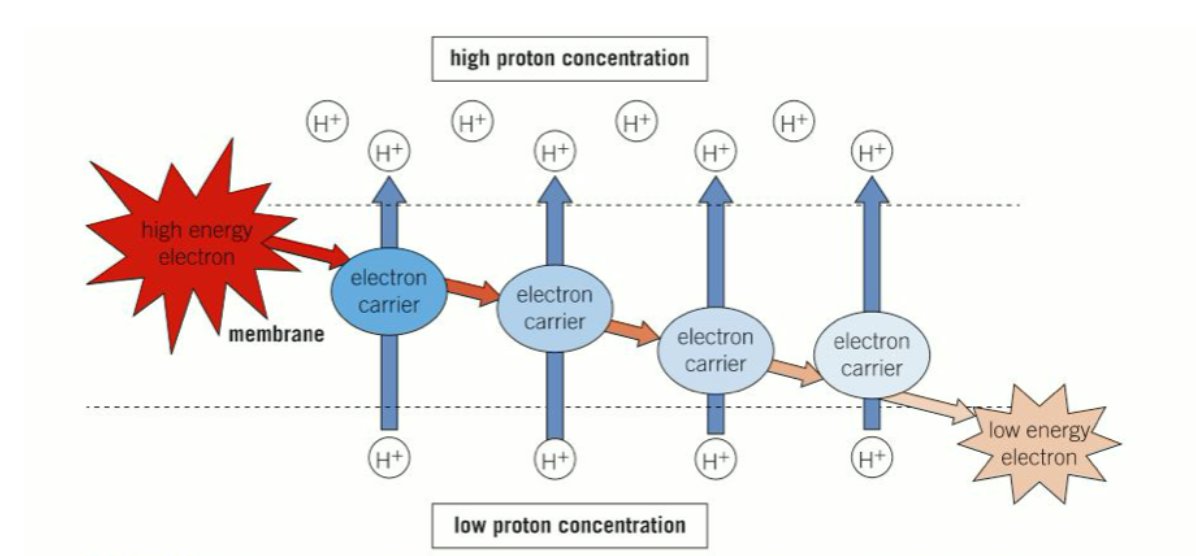 flow of electrons down an electron transport chain diagram