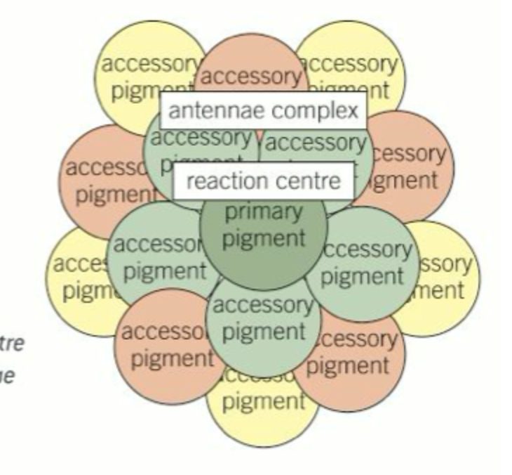 These and other proteins and pigments form a light harvesting system (also known as an antennae complex).