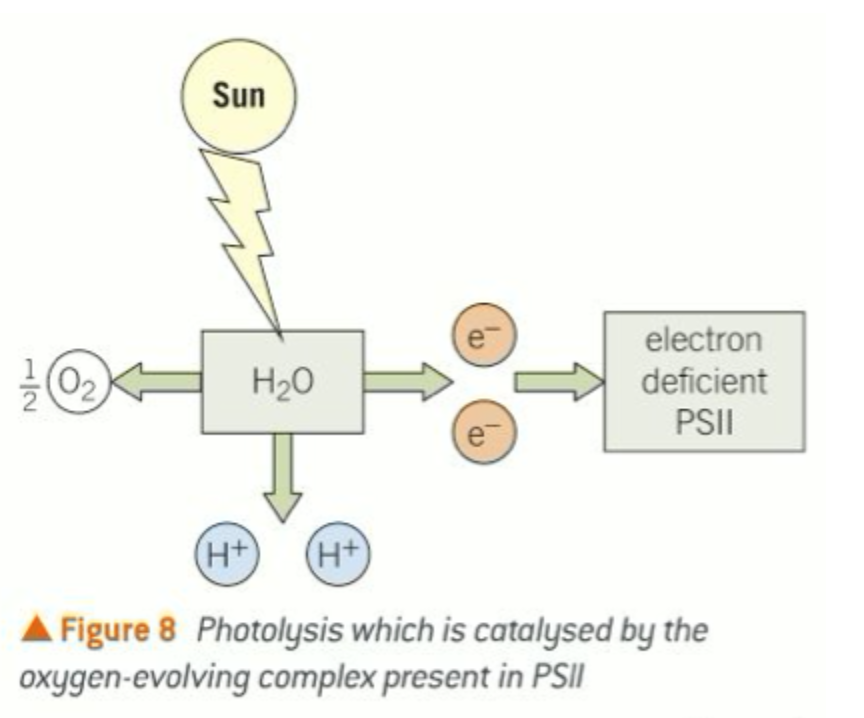 The oxygen-evolving complex which forms part of PSII is an enzyme that catalyses the breakdown of water.