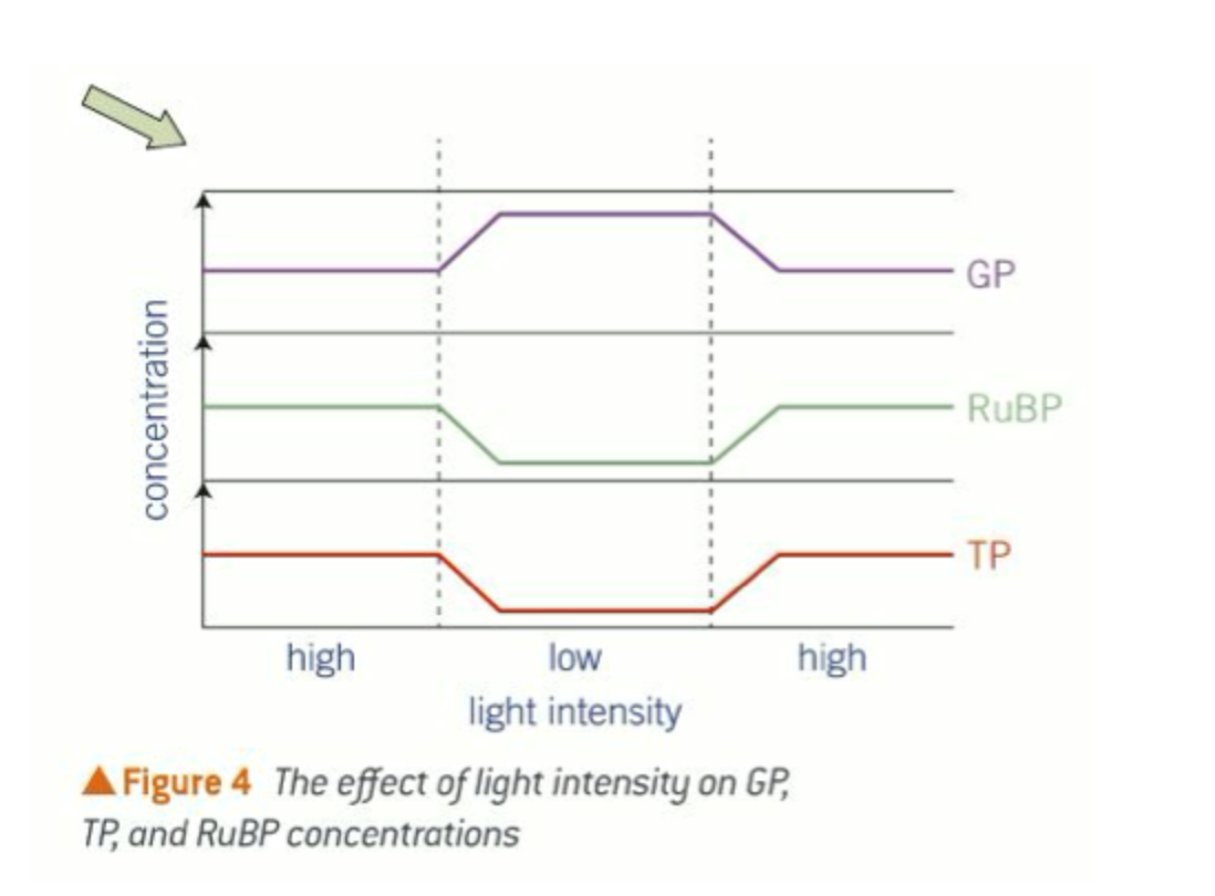 The effect of reducing light intensity on the Calvin cycle diagram