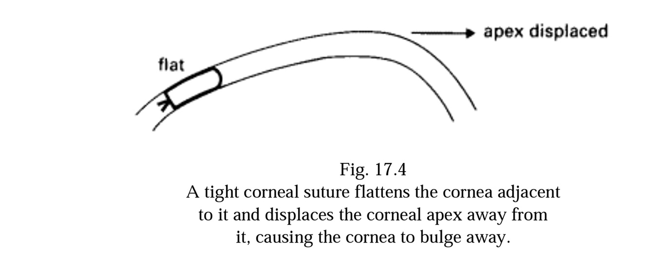 Place tight suture in the flattest meridian causing it to become more curved to match the other meridian.