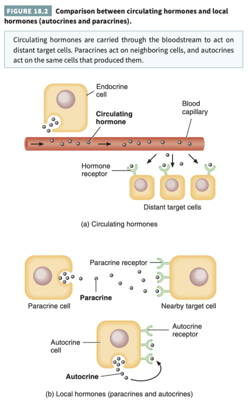What are the two types of local hormones? Describe them