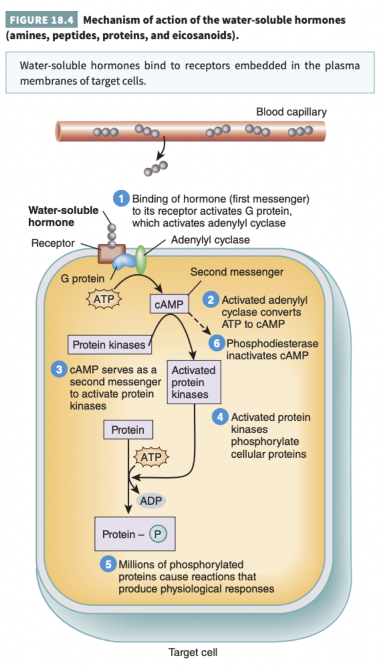 Cannot diffuse through the lipid bilayer of the plasma membrane and bind to receptors inside the target cells, like lipid-soluble hormones. Instead, they bind to receptors embedded in the plasma membranes of target cells.