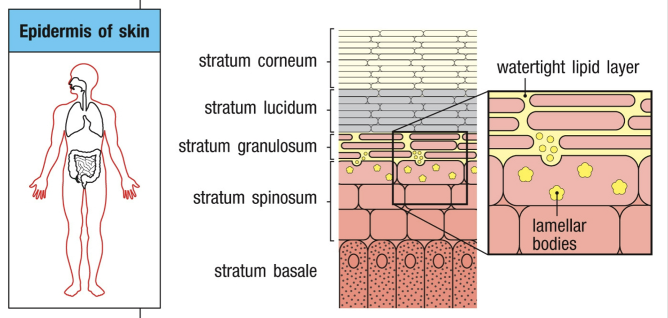 The epidermis of the skin has multiple layers of ________________ in different layers of differentiation