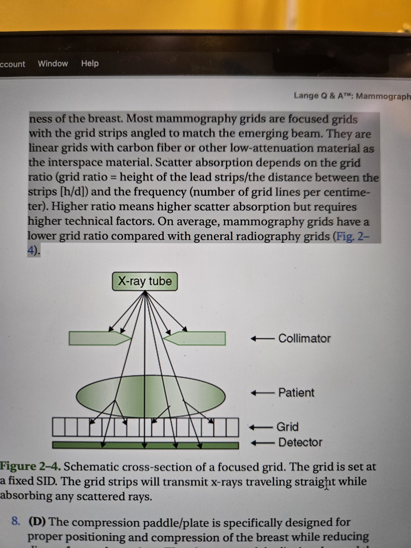 “7.The grid ratio can vary in modern mammography units. A common grid ratio used is