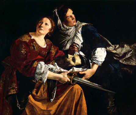 Judith sheilds her eyes from the glare of the flame, so that a shadow is cast across her face-a daringly lifelike motif that Carvaggio had used in The Calling of St. Matthew