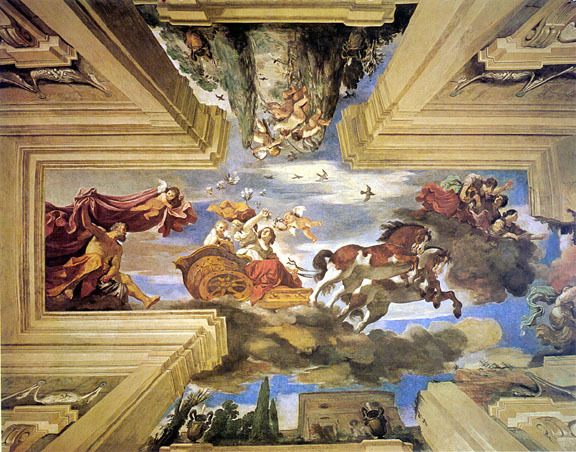 Opulent ceiling decoration like this set the standard for European palaces well into the 18th century; the most prominent example being designs for the Planetary Rooms at Versailles