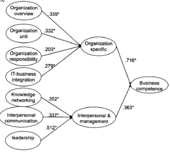In which organizational specific and Interpersonal & mangement factors is Business competence divided?
