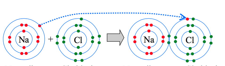 atoms release, attract or share electrons to reach stable configurations