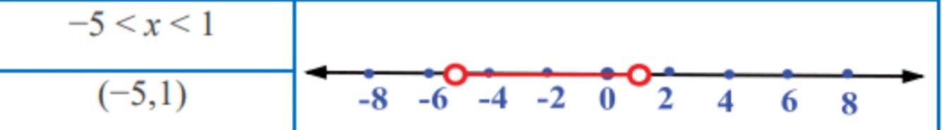 What is the interval notation for the inequality -5 < x < 1?