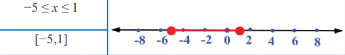 What is the interval notation for the inequality -5 ≤ x ≤ 1?