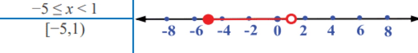 What is the interval notation for the inequality -5 ≤ x < 1?