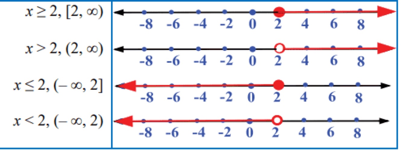 What is the interval notation for the inequality x ≥ 2?