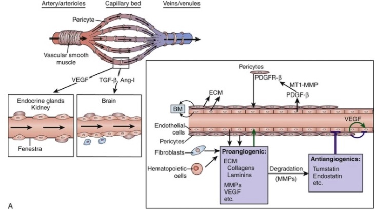 VEGF: fenestrated endothelium in endocrine glands and kidneys Angiopoietin-1: tight junctions at blood-brain barrier