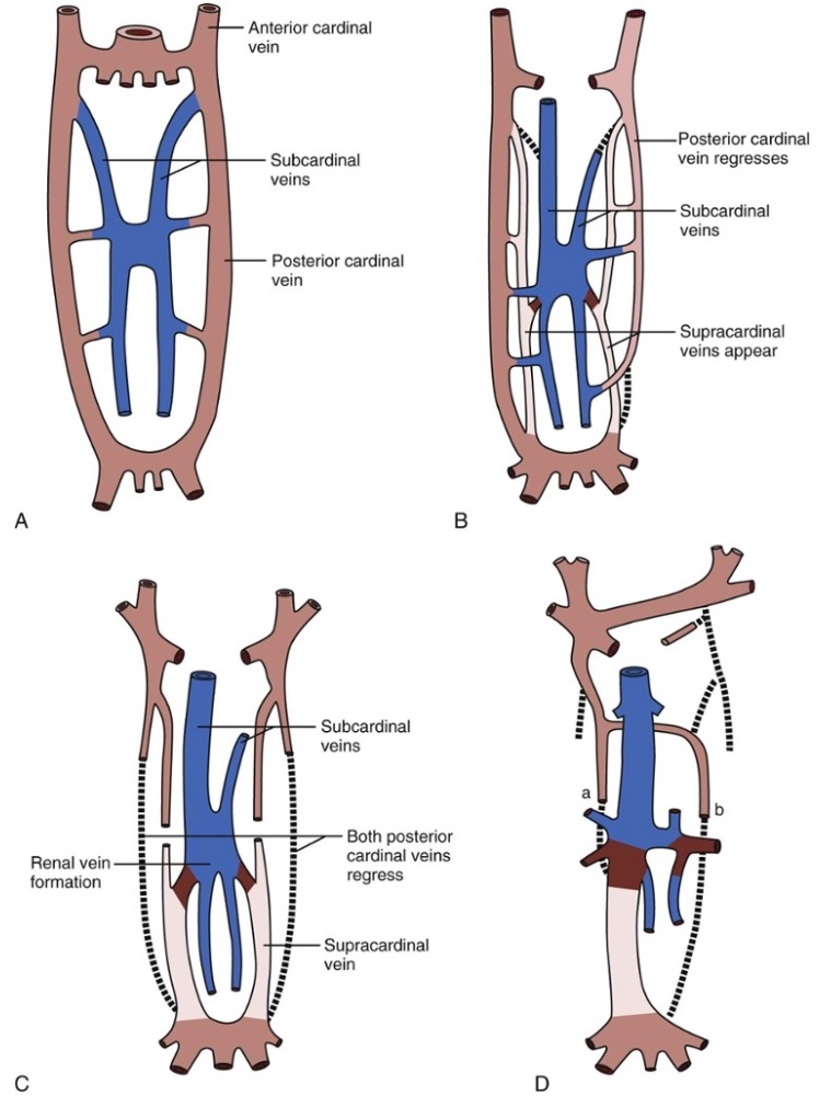Posterior cardinal veins, subcardinal veins, supracardinal veins = IVC, tributaries, azygos system