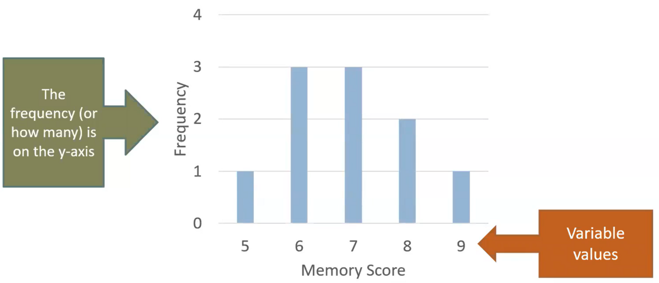 A histogram is a bar graph of data that shows the frequency of each value of a variable. Same info as a frequency table, but visualised differently.