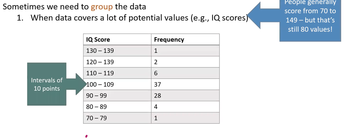 If you have data that range from 2 - 68 and you want seven intervals in a grouped frequency table, what would the intervals be?