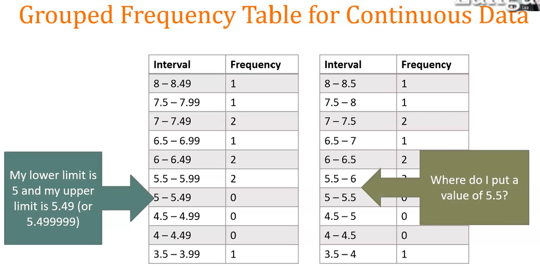 c) for continuous data, use lower and upper limits (the lowest and highest possible values)