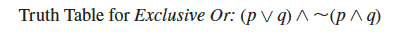 What is the symbol for exclusive or? Whats the difference between inclusive and exclusive or? Whats the truth table?