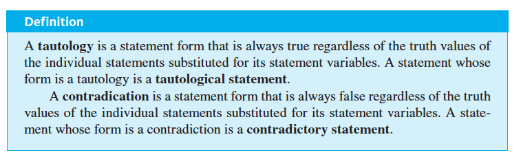 What is a statement from called when its is always true for all the truth values; What is it called when it is always False.